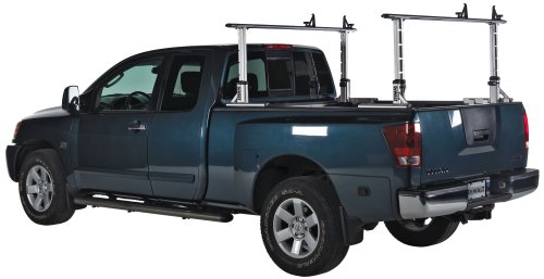 DeWALT Contractor Aluminum Rack is designed to provide maximum loading flexibility and superior carrying capability. It is made from high grade aluminum and is highly durable. This aluminum rack features stylish appearance through its patented height. It includes adjust load bars that can be raised or lowered to 5 different heights for convenient loading, carrying and unloading. This rack has 2 slots of reinforcement within load bars for added strength, rigidity and accessory attachment. It consists of 4 fully welded mounting rails with lock clamp on to the top of the truck bed rail and lock uprights in place for easy installation. This rack contains 4 adjustable load stops that slide across each load bar for safe and secure attachment of equipments. It entails ProTec strips in the load bars to protect against wear on equipment and damage of building materials.